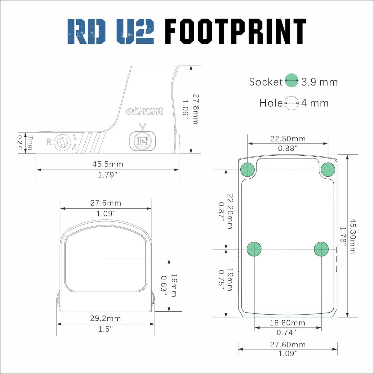 ohhunt® RD U2 3 MOA Micro Shake Awake Red Dot Sight