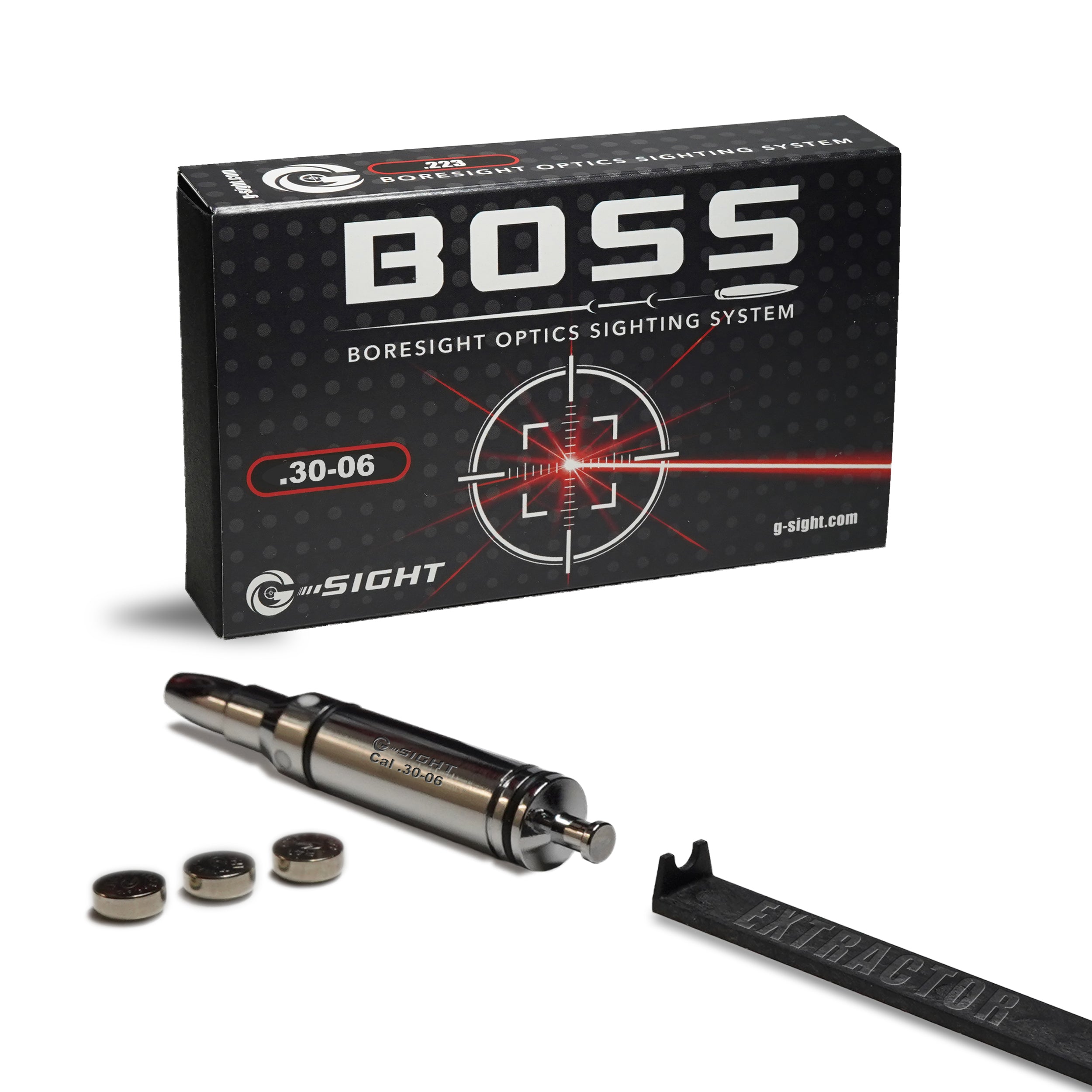 Each BOSS .30-06 Boresight comes with; One Laser Boresight, One Chamber Extractor Tool