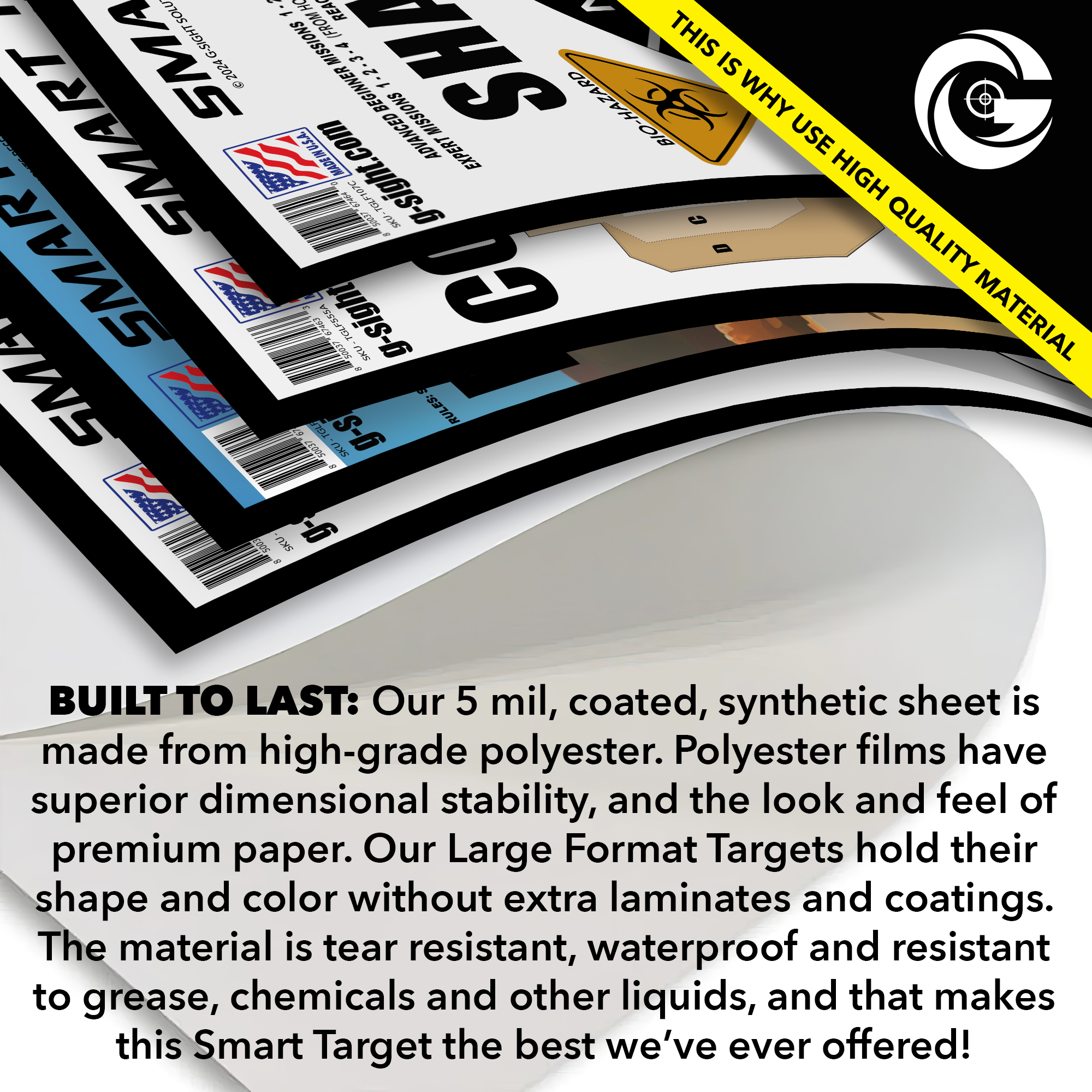 Designed with longevity and performance in mind, these targets are printed on a unique 5mm Synthetic Composite Plastic, ensuring unmatched durability and a "Built to Last" quality. The innovative material boasts a LAY FLAT MEMORY feature, allowing the target to unroll from its packaging into a perfectly flat sheet ready for immediate use.
