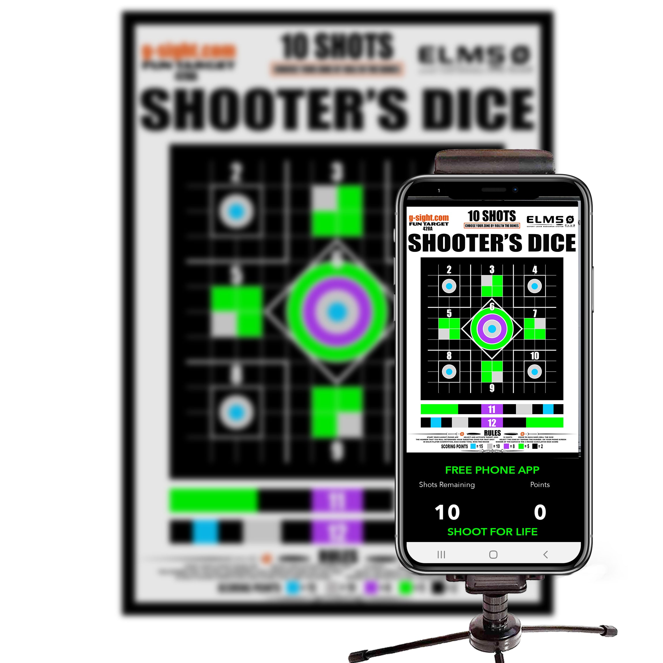 SHOOTERS DICE is one of the first targets with technology and programming built in! This is not "just a piece of paper"! This target, when used with our 100% FREE brand new state of the art SHOOT FOR LIFE MOBILE APP includes auto ALIGNMENT, auto target SCORING with game play functions & features that will challenge even the most accomplished shooters in the world!